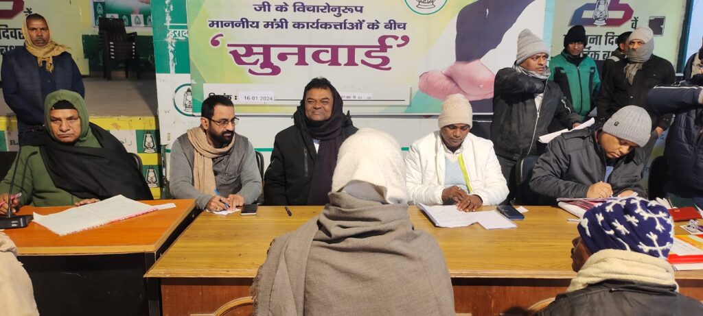 एजाज ने आगे बताया कि अगले मंगलवार 23 जनवरी, 2024 को विधि मंत्री डा0 मो शमीम अहमद एवं कृषि मंत्री कुमार सर्वजीत सुनवाई कार्यक्रम में शामिल होंगे।