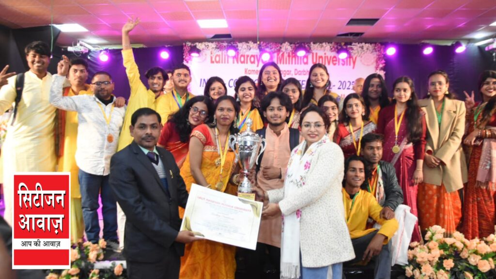सिटीजन न्यूज़ : ललित नारायण मिथिला विश्वविद्यालय दरभंगा के पीजी एथलेटिक्स एवं डॉ एपीजे अब्दुल कलाम डब्ल्यूआईटी के संयुक्त तत्त्वावधान में 10 से 13 जनवरी के बीच विश्वविद्यालय मुख्यालय में आयोजित इंटर कॉलेज यूथ फेस्टिवल प्रतियोगिता 2025-26 “अनंतनाद” का समापन समारोह 13 जनवरी, 2026 को जुबिली हॉल में आयोजित किया गया। कुलानुशासक प्रो विजय कुमार यादव की अध्यक्षता में आयोजित समारोह में मिथिला विश्वविद्यालय के पूर्व कुलपति डॉ समरेन्द्र प्रताप सिंह मुख्य अतिथि, विज्ञान संकायाध्यक्ष प्रो दिलीप कुमार चौधरी, वाणिज्य संकायाध्यक्ष प्रो हरे कृष्ण सिंह, ललित कला संकायाध्यक्ष प्रो लावण्य कीर्ति सिंह ‘काव्या’, सिंडिकेट सदस्य डॉ बैजनाथ चौधरी ‘बैजू’ एवं मीणा झा, एमएलएसएम कॉलेज के प्रधानाचार्य डॉ शंभू कुमार यादव, डब्ल्यूआईटी निदेशक प्रो अजय नाथ झा, खेल पदाधिकारी प्रो अमृत कुमार झा, आयोजन सचिव डॉ प्रियंका राय, एमएमटीएम कॉलेज के प्रधानाचार्य डॉ उदय कान्त मिश्र, एनएसएस समन्वयक डॉ आर एन चौरसिया, संस्कृत विभागाध्यक्ष डा कृष्णकांत झा, दर्शनशास्त्र विभागाध्यक्ष डॉ शिवानंद झा, डॉ नीतू कुमारी, डॉ ममता स्नेही, डॉ सुनीता कुमारी, सहभागी कॉलेज के टोली प्रबंधकों के साथ ही प्रतिभागी छात्र-छात्राएं एवं संगत कलाकारों तथा आयोजन के सहयोगियों सहित 150 से भी अधिक संख्या में लोग उपस्थित थे। प्रतियोगिता में विश्वविद्यालय के पीजी एथलेटिक्स को सर्वाधिक 124 अंक के साथ चैंपियन घोषित किया गया, जबकि सीएम कॉलेज दरभंगा को 82 अंकों के साथ उपविजेता। मनीष राज एवं सुमित कुमार झा के संचालन में आयोजित समारोह में अतिथियों का स्वागत पाग, चादर, बुके एवं मोमेंटो से किया गया।