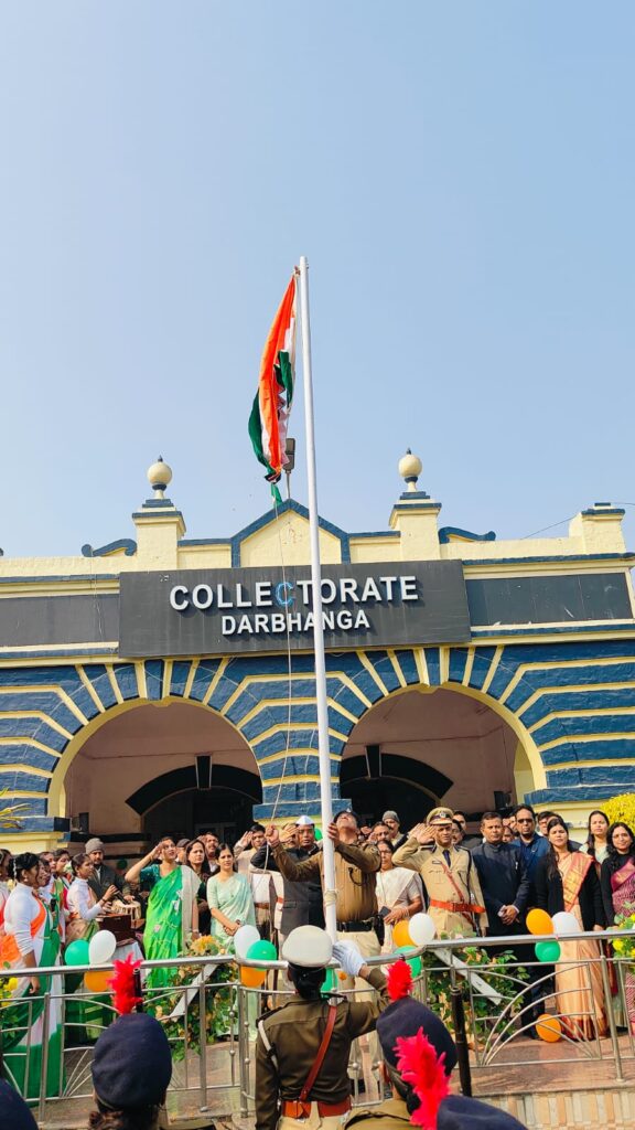दरभंगा : 77 वें गणतंत्र दिवस के अवसर पर समाहरणालय में जिलाधिकारी कौशल कुमार द्वारा झंडोत्तोलन किया गया।