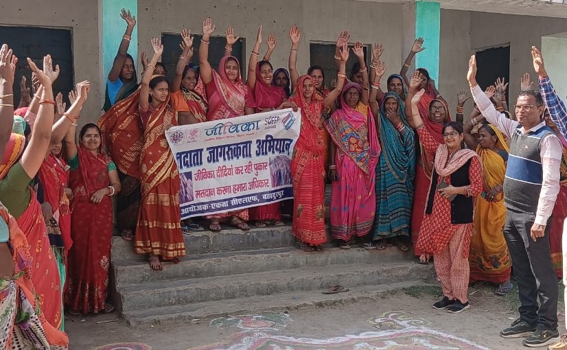 जीविका दीदियों ने संकल्प लिया कि हम आगामी चुनावों में सपरिवार वोट डालने जायेंगे और बिना लालच और भय के साथ मतदान करेंगे।
