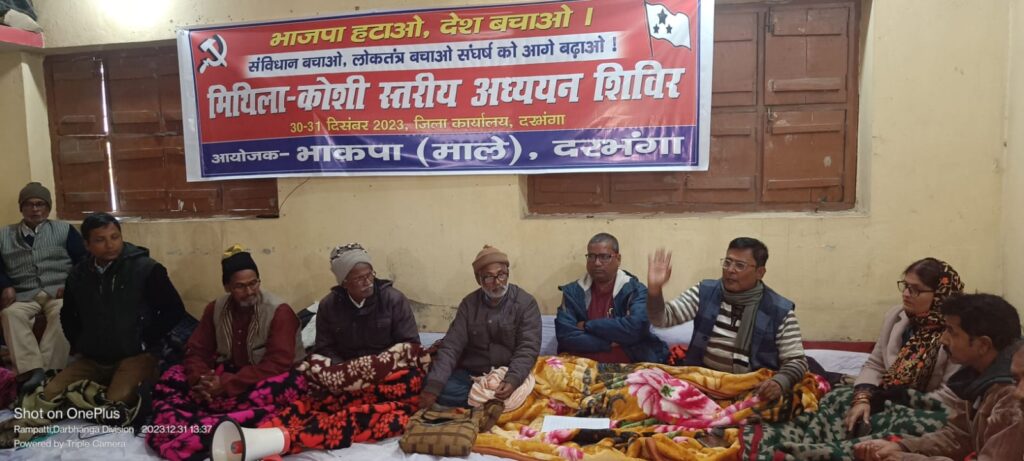 अध्यन शिविर की अध्यक्षता दरभंगा जिला सचिव बैद्यनाथ यादव, समस्तीपुर जिला सचिव उमेश कुमार, मधुबनी जिला सचिव ध्रुव नारायण कर्ण, सुपौल जिला सचिव जय नारायण यादव ने किया।