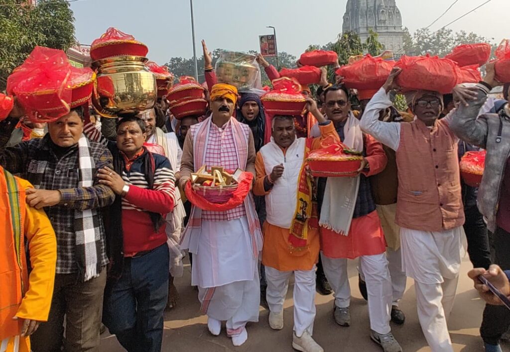 सांसद गोपाल जी ठाकुर ने राजस्थान विप्र मंडल के साथ भार शोभा यात्रा में, सिर पर भार(उपहार) व हाथ में श्रीराम ध्वज लेकर जय सियाराम के नारों के साथ राजकुमारगंज स्थित पंचमुखी हनुमान मंदिर से माँ श्यामा माई मंदिर तक पैदल यात्रा की।