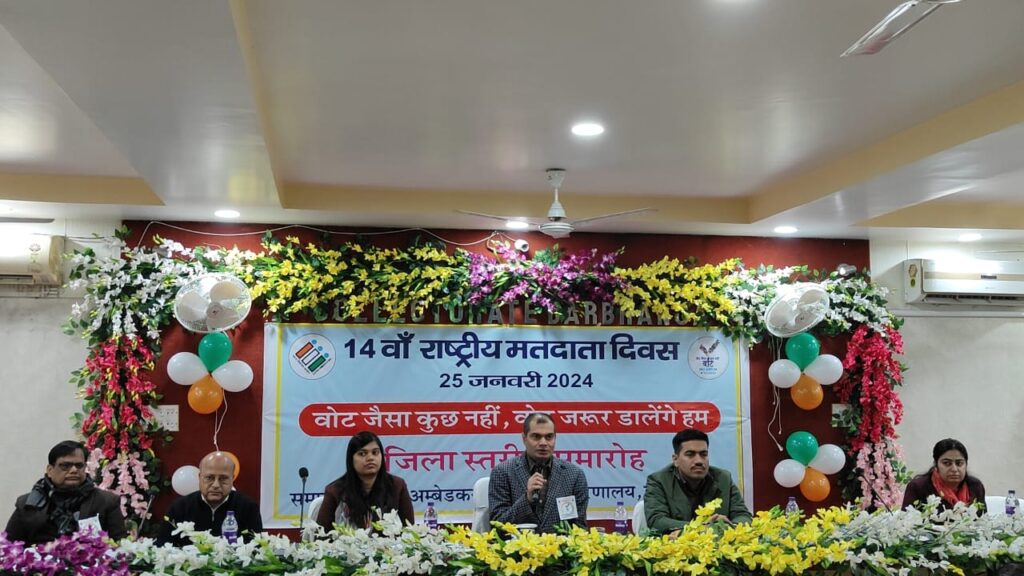 दरभंगा : समाहरणालय अवस्थित बाबा साहेब डॉ.भीमराव अंबेडकर सभागार में जिला निर्वाचन पदाधिकारी-सह-जिलाधिकारी राजीव रौशन की अध्यक्षता में राष्ट्रीय मतदाता दिवस कार्यक्रम का आयोजन किया गया।