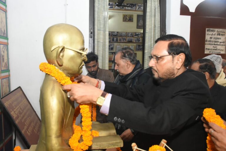 महात्मा गांधी की मूर्ति पर माल्यार्पण एवं पुष्पांजलि अर्पित, 2 मिनट का मौन रख कर दी गई श्रद्धांजलि
