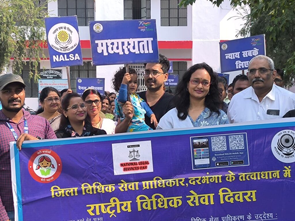 दरभंगा : रैली में लीगल ऐड डिफेंस काउंसिल के सदस्यगण,पैनल अधिवक्ता,पारा विधिक स्वयंसेवक एवं कर्मचारीगण शामिल हुए। सचिव बोली आज का दिन विधिक सेवा के लिए उत्सव का है। आज ही के दिन वर्ष 1995 में समाज के गरीब एवं कमजोर वर्ग के लोगों को कानूनी रूप से सबल बनाने के लिए विधिक सेवा प्राधिकरण अधिनियम प्रभाव में आया था। तब से राष्ट्रीय विधिक सेवा प्राधिकरण द्वारा लोगों को मुफ्त कानूनी सहायता के लिए विभिन्न योजनाओं को तैयार कर पैनल अधिवक्ताओं एवं पारा विधिक स्वयंसेवकों के सहयोग से समाज के अंतिम पायदान पर खड़े लोगों तक न्याय का संदेश पहुंचाने का प्रयास किया जा रहा है।