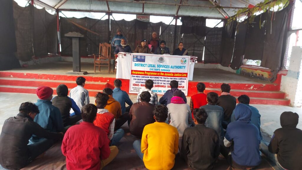 दरभंगा : माननीय जिला एवं सत्र न्यायाधीश-सह-अध्यक्ष जिला विधिक सेवा प्राधिकार, दरभंगा विनोद कुमार तिवारी के निर्देशानुसार नालसा के तहत चलाये गये देशव्यापी अभियान “रिस्टोरिंग द यूथ-2024” के आलोक में मंडल कारा में जुवेनाइल जस्टिस कानून विषय पर जागरूकता कार्यक्रम का आयोजन किया गया।